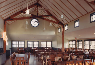 This dining hall has a sun-filled, cheery atmosphere. It replaced the original,