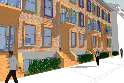 Each sub-divided lot would include a 2,232 GSF four-story townhouse, a private garden, free-standing private one-car garage,