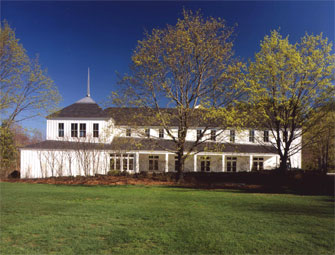 and slightly skewed front porch subtly annouce that the facility is a special
