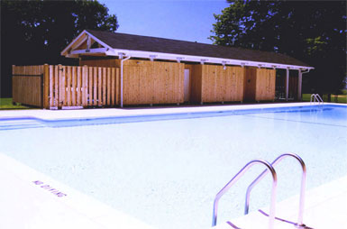 and beam construction, and unfinished cedar siding. Changing rooms for