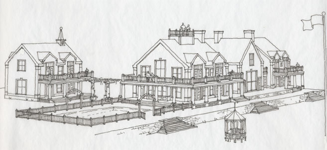 a widow's walk, a separated guest cottage/pool house/garage, and pool.