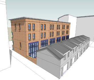 direct views toward an adjacent park. Note the double-height, south-facing space overlooking the townhouse garden in each unit.