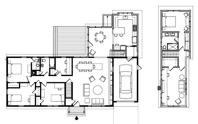 Floor Plans depicting existing and new spaces. Dark filled walls are existing, light filled are new.