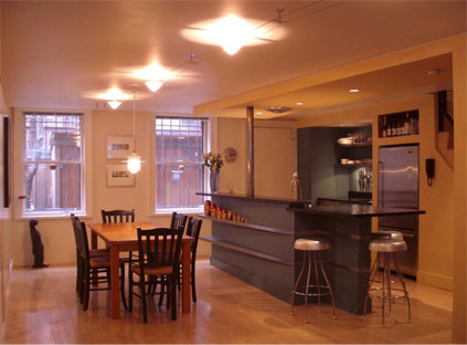 Gut renovation of a garden-level duplex in Boston's historic South End neighborhood. The contemporary interiors are clean and uncomplicated without being austere or impractical.