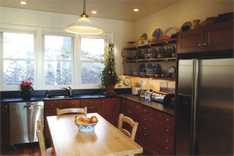 Watertown, MA. The new kitchen features "lab-top" counters, cantilevered