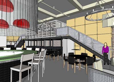 as intimate dining experiences. A prominent raw bar, bar, wine 'catwalk', lounge, and plentiful booths would have