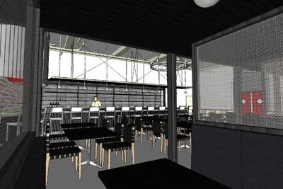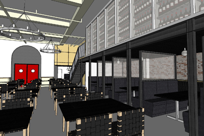 Looking back toward the bar from a booth
